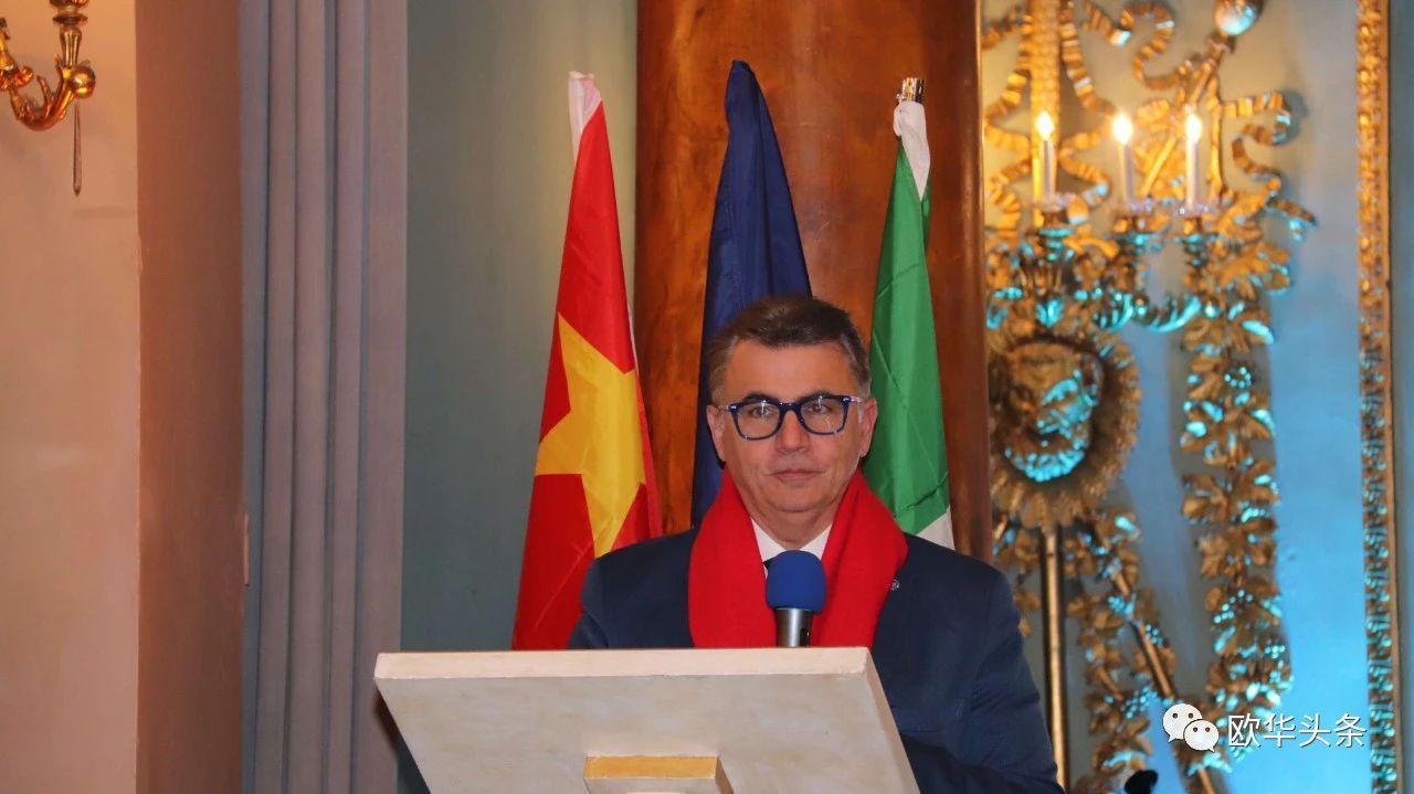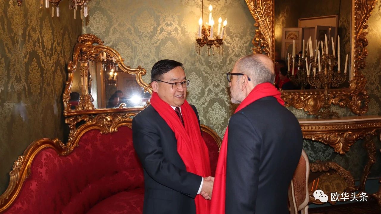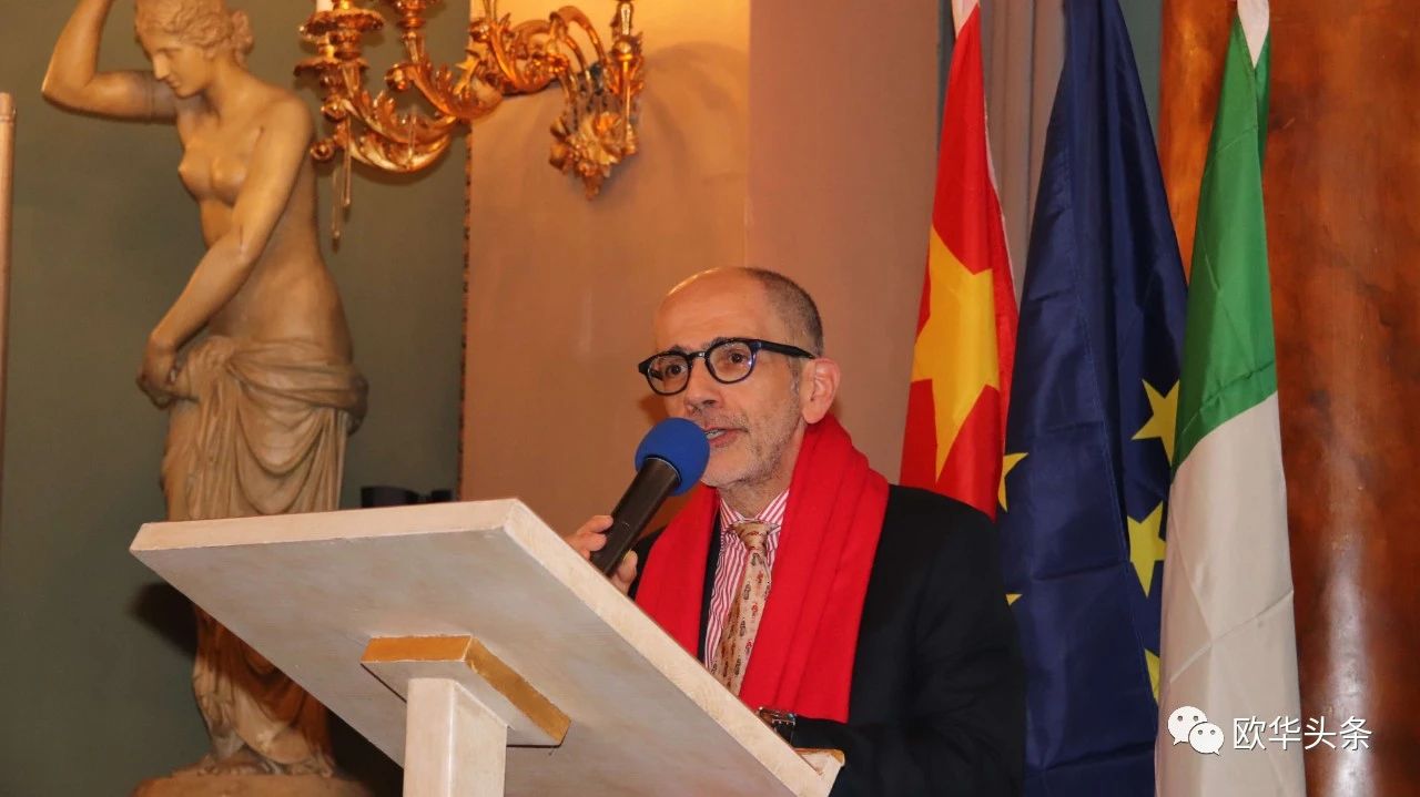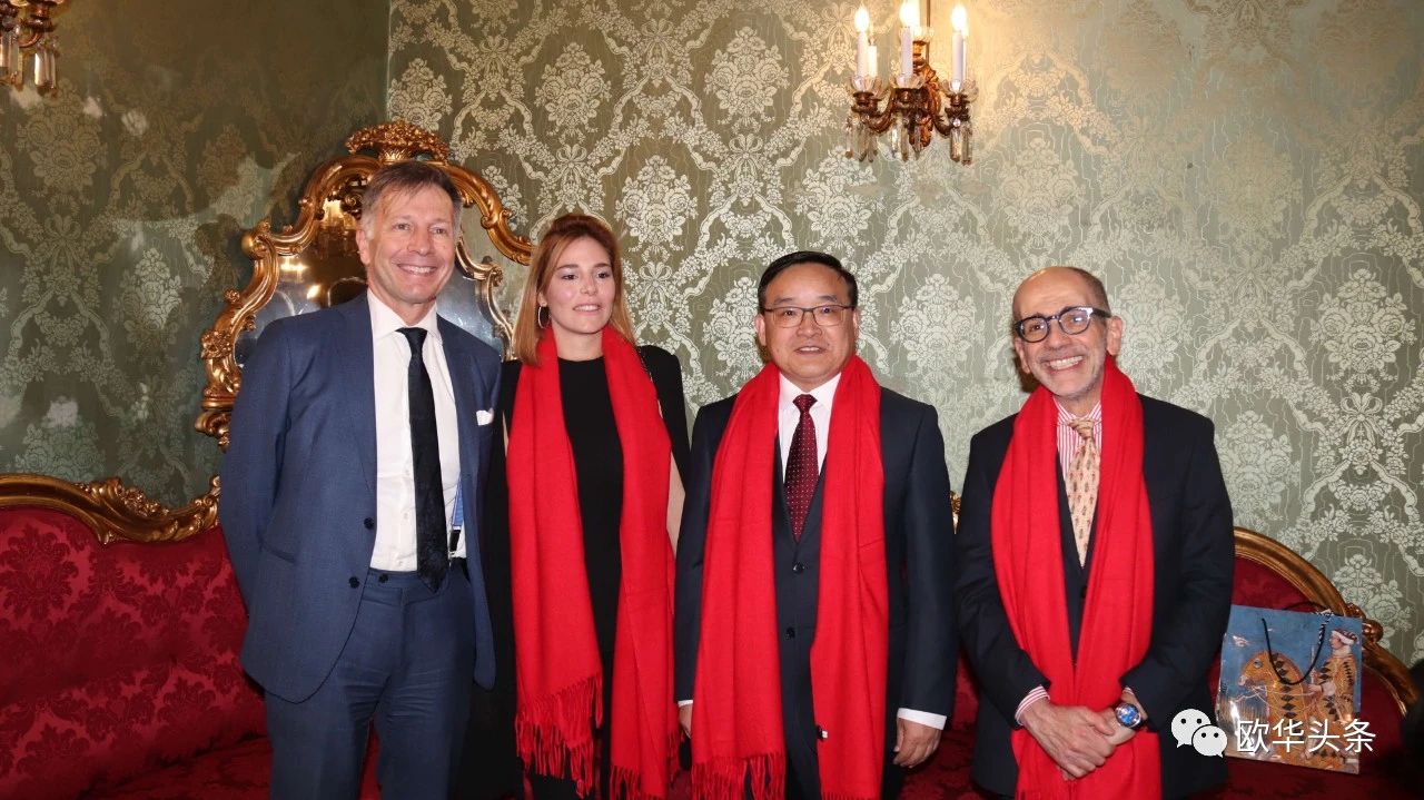 贾桂德大使向所有来宾致以最美好的新春祝愿并表示,佛罗伦萨是文艺复兴的摇篮,历史悠久、风景秀丽,也是我履新驻意大使后首次参访的城市。春节是中华文化当中最重要的传统节日,此次活动现场让人深切感受到“中意一家亲”。满堂的红色围巾,是中华传统文化喜庆的色彩。尽管两国相距遥远,但晚会由中意人士共贺春节,让人感受到浓浓的年味儿。